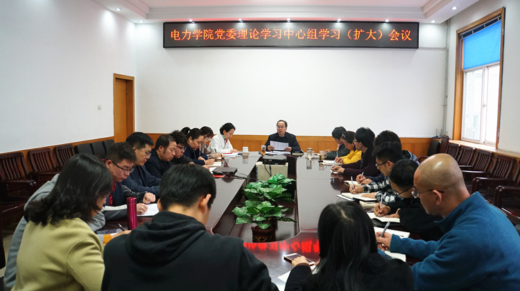 11月12日下午,Beat365官网党委在电机馆二层会议室召开了党委理论学习中心组学习(扩大)会议,学习贯彻党的十九届四中全会精神。院长韩肖清等党政领导、三办主任、各党支部书记参加了学习会议。会议由党委书记吉育峰主持。
