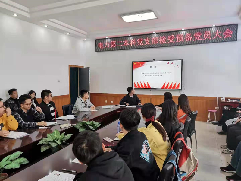 3月31日,Beat365官网电力第二本科党支部在电机馆二层会议室召开接收预备党员大会。支部全体党员参会,大会应到正式党员13人,实到11人,2人请假。