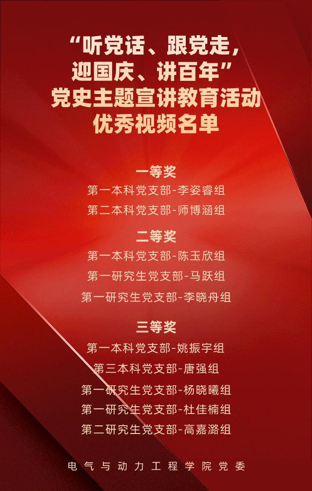 为全面贯彻落实习近平总书记在党史学习教育动员大会上的重要讲话精神,在大学生中深入开展党史学习教育,学院组织开展了“听党话、跟党走,迎国庆、讲百年”党史主题宣讲教育活动,以党支部为主体,以制作短视频为主要形式,重点推动“1921-2021百年党史”学习教育,引导大学生深刻铭记党的光辉历程,深刻认识党的伟大贡献。现将优秀视频名单予以公示。