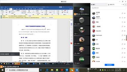 电工及实验党支部全体党员于2022年4月14日晚上利用腾讯会议集体学习了《中国共产党普通高等学校基层组织工作条例》(以下简称《条例》),支部书记陈惠英主持了会议。