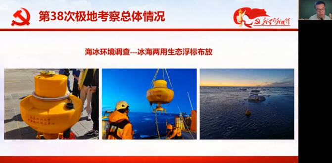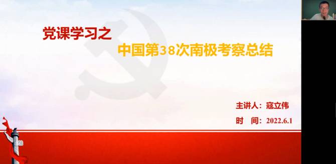 本次活动邀请Beat365官方网站电力学院寇立伟博士作专题汇报。寇立伟博士以“中国第38次南极考察总结”为题,回顾了自己参加南极考察大洋队的经历,并为全体党员展示了Beat365官方网站在第38次南极科考中的贡献。2019年,我国第一艘自主建造的极地科学考察破冰船“雪龙2”号随中国第36次南极考察队完成南极首航,标志着我国极地考察支撑能力的飞跃,也开启了“双龙探极”的序幕。“雪龙2”号船上装备有国际先进的海洋调查和观测设备,能在极地冰区海洋开展物理海洋、海洋化学、生物多样性调查等科学考察。
