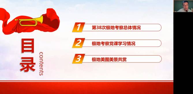 南极考察期间,考察队深入学习《十九届六中全会精神》、《中共中央关于党的百年党史的决议》等文件,并在繁重的科考间隙举行了系列主题党日活动。尽管身在南极,党员也应该提高政治站位,不放松对自身的要求,不忘初心,践行“爱国、拼搏、求实、创新”的南极精神,党建引领,为国铸器。