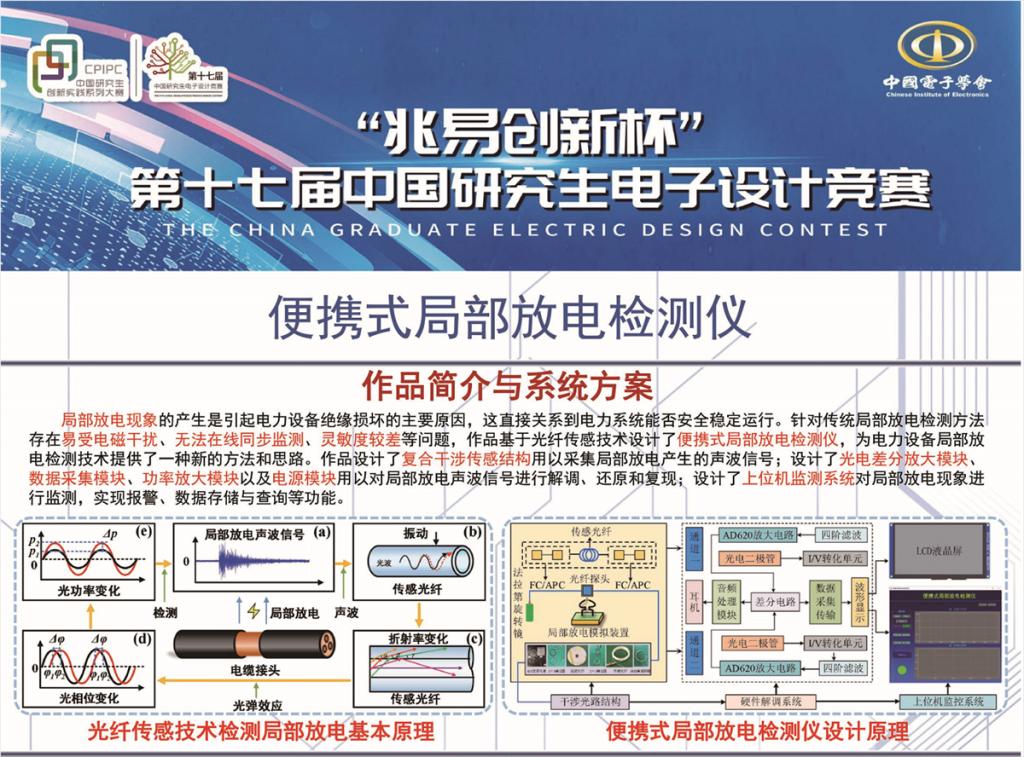 电气第二研究生党支部党员郝洋带领“便携式局部放电检测仪”队伍,荣获研电赛华北赛区一等奖。“兆易创新杯”第十七届中国研究生电子设计竞赛由教育部学位管理与研究生教育司指导,中国学位与研究生教育学会、中国科协青少年科技中心、中国电子学会共同主办。2022 年3月正式开赛以来,来自三百余所高校及科研院所的5824支队伍报名参赛。