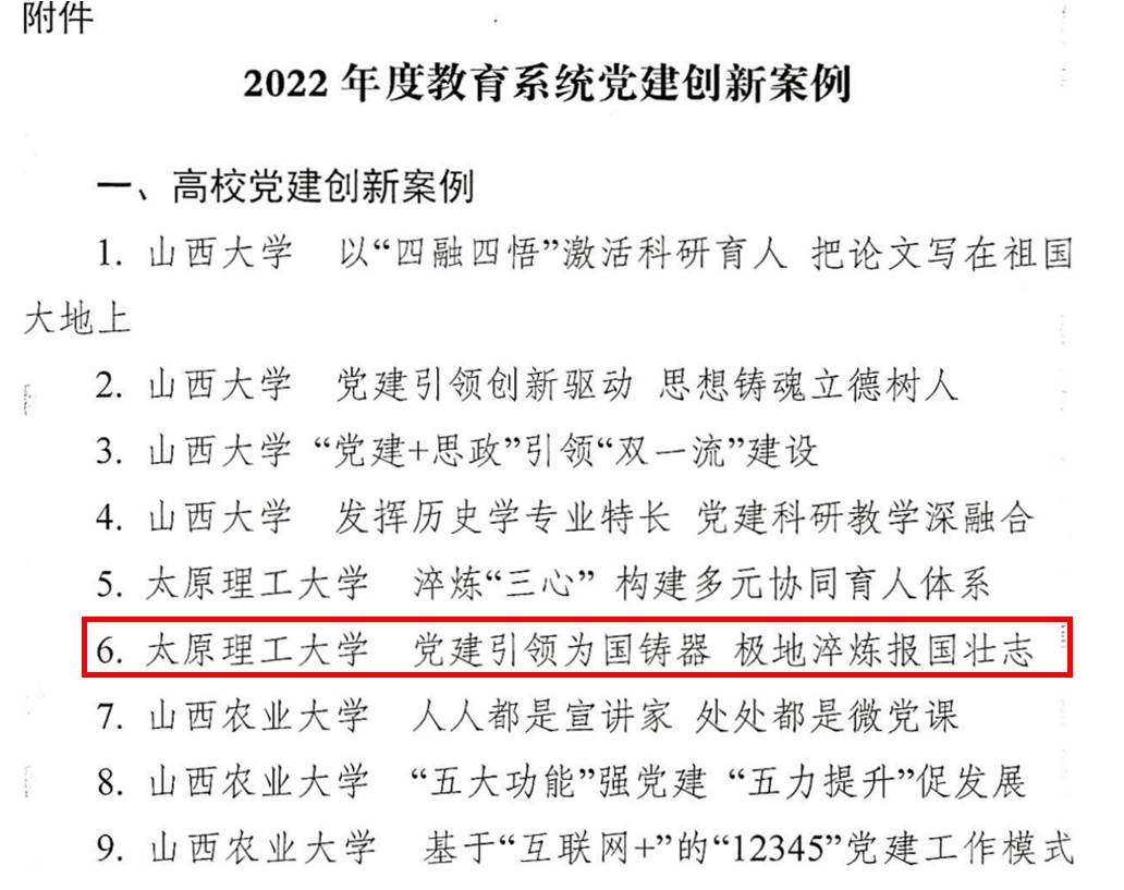 中共山西省教育工作委员会发布2022年度教育系统党建创新案例评选结果,Beat365官方网站电气第二研究生党支部党建工作案例成功入选,标志着Beat365官网基层党建与研究生高质量培养工作取得了较好的成效。此次党建创新案例评选由省委教育工委统一组织,经过学校党组织申报、专家评审,共评选出优秀案例86个,其中高校63个,中小学校23个。
