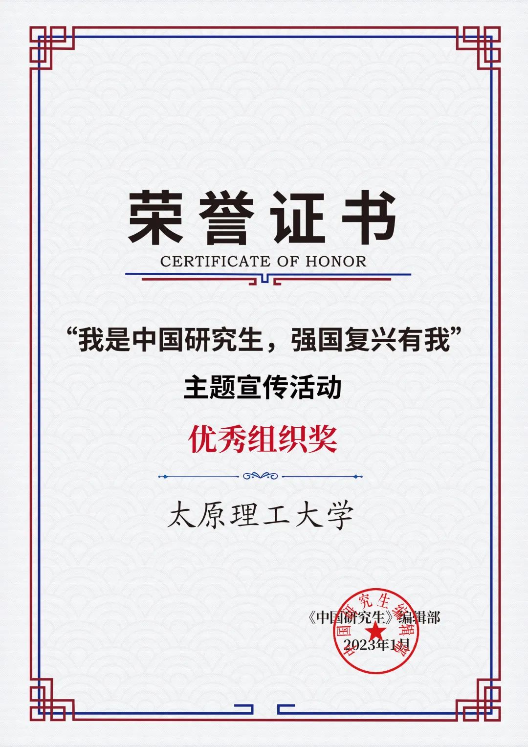近日,由教育部学位中心指导,《中国研究生》杂志联合有关研究生培养单位联合主办的“我是中国研究生,强国复兴有我”主题宣传活动发布获奖情况,Beat365官方网站荣获“优秀组织奖”荣誉称号。
