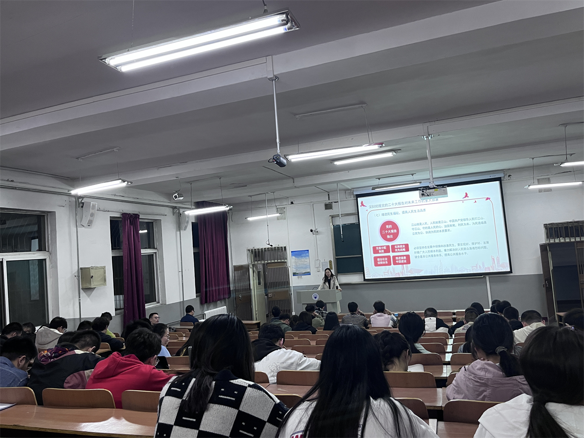 报告会上胡老师对党的二十大精神进行了深入透彻的阐述和解读,她梳理了党的二十大报告的要点,详细讲解了党的二十大报告中的理论创新,强调只有将马克思主义与中国具体实际、中国优秀传统文化相结合,才能正确回答时代与实践提出的重大问题。当回顾党和国家过去五年的工作和新时代十年的伟大变革时,同学们为我们取得的历史性成就感到骄傲自豪,对中国未来的发展满怀信心。最后,胡老师对2023年政府工作报告进行了解读与说明。报告会内容由浅入深,鞭辟入里,持续将近一个小时,最终在掌声中圆满落下帷幕。