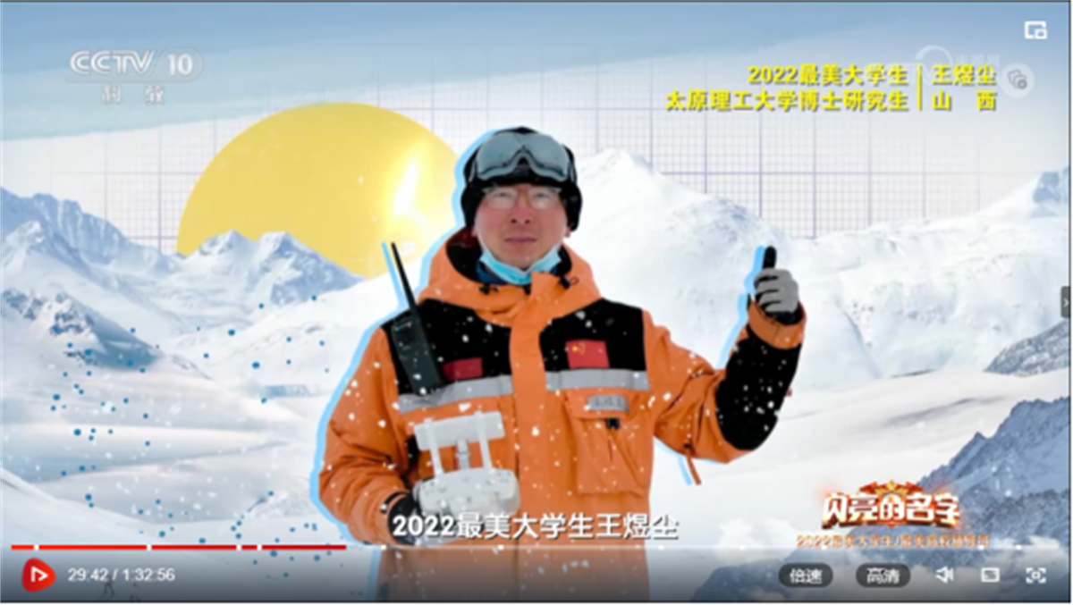 喜报!Beat365官方网站博士生王煜尘荣获2022年全国“最美大学生”并参加《闪亮的名字—2022最美大学生/最美高校辅导员发布仪式》