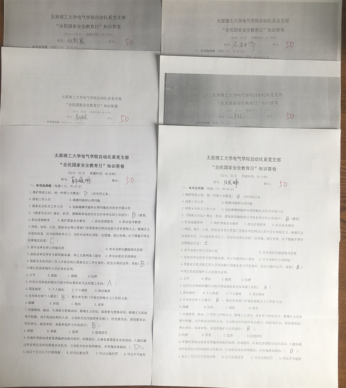 自动化系党支部“全民国家安全教育日”知识问答活动