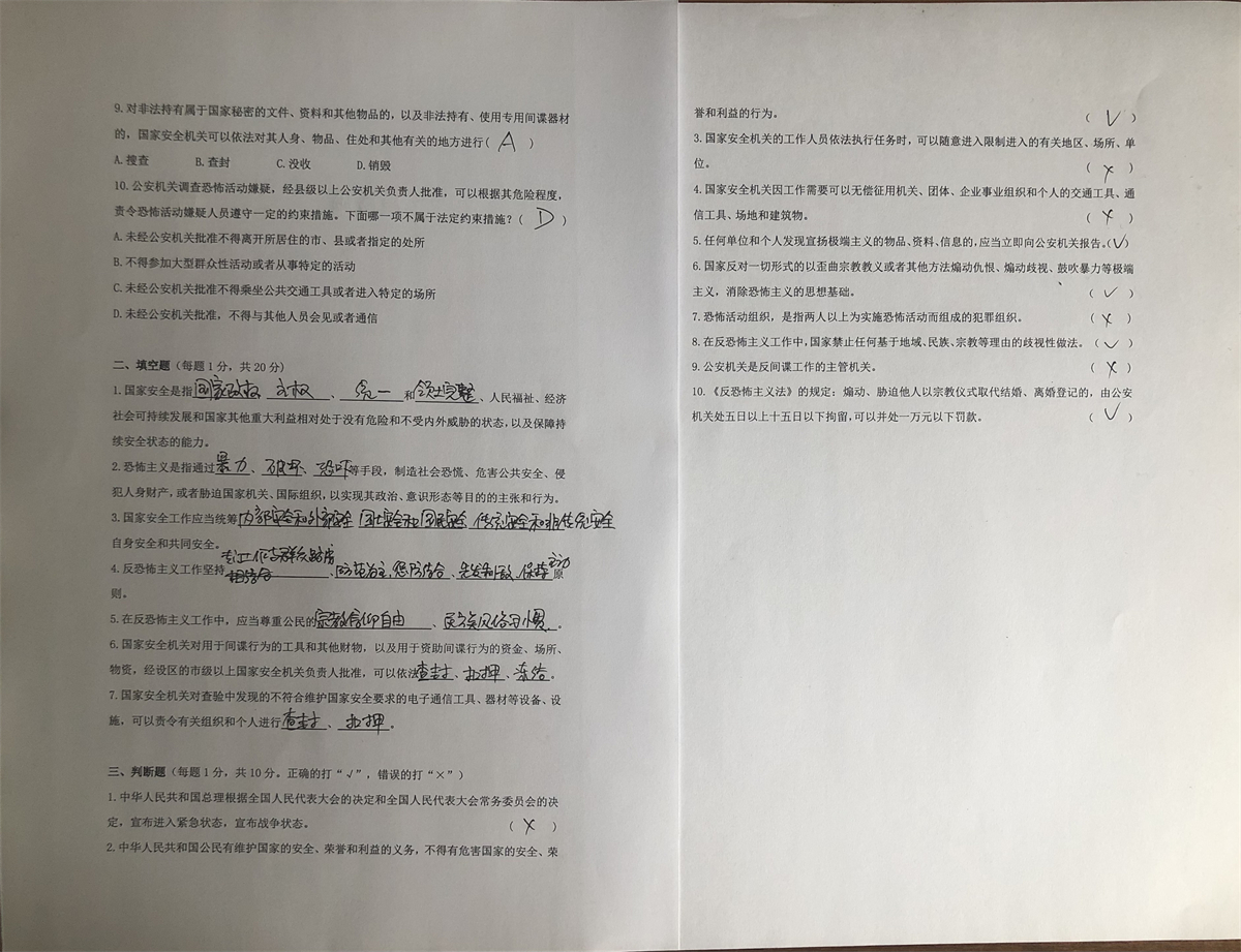 本次知识测试题型主要由单选题、填空题、判断题等部分组成,知识点涵盖了《国家安全法》七章84条的主要内容,包括国家安全和国家安全战略等的内涵、核心、指导思想等。题目设置类型多、范围广,紧贴党员学习实际,具有很强的针对性。