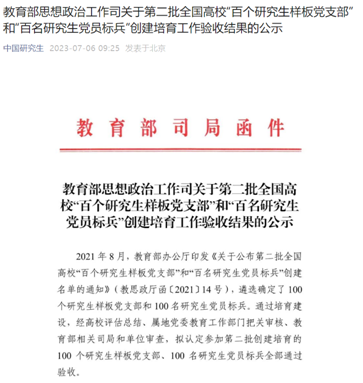近日,教育部思想政治工作司公布了第二批全国高校“百个研究生样板党支部”和百名研究生党员标兵”验收通过名单,电气第二研究生党支部通过建设单位验收。