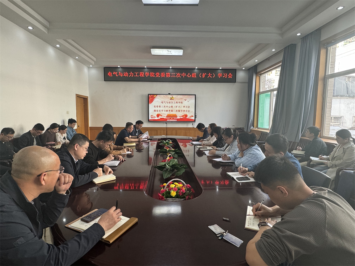 424日,学院党委于电机馆223会议室召开党委第三次中心组(扩大)学习会暨党纪学习教育第一次集中学习会。会议由院党委书记徐鑫主持。
