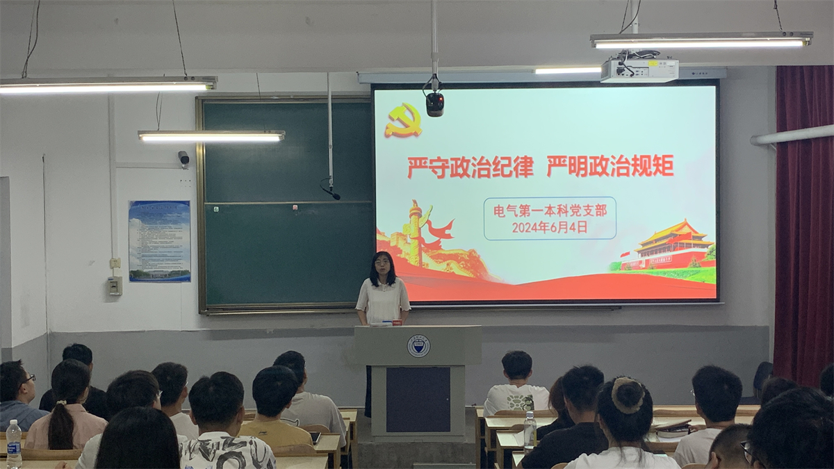 为加强党员的纪律观念,提升党性修养,确保党的纪律在党员中得到严格执行。6月4日,电气第一本科党支部在机械馆2102开展党纪学习教育主题党日活动。支部书记侯婷主持了本次活动。