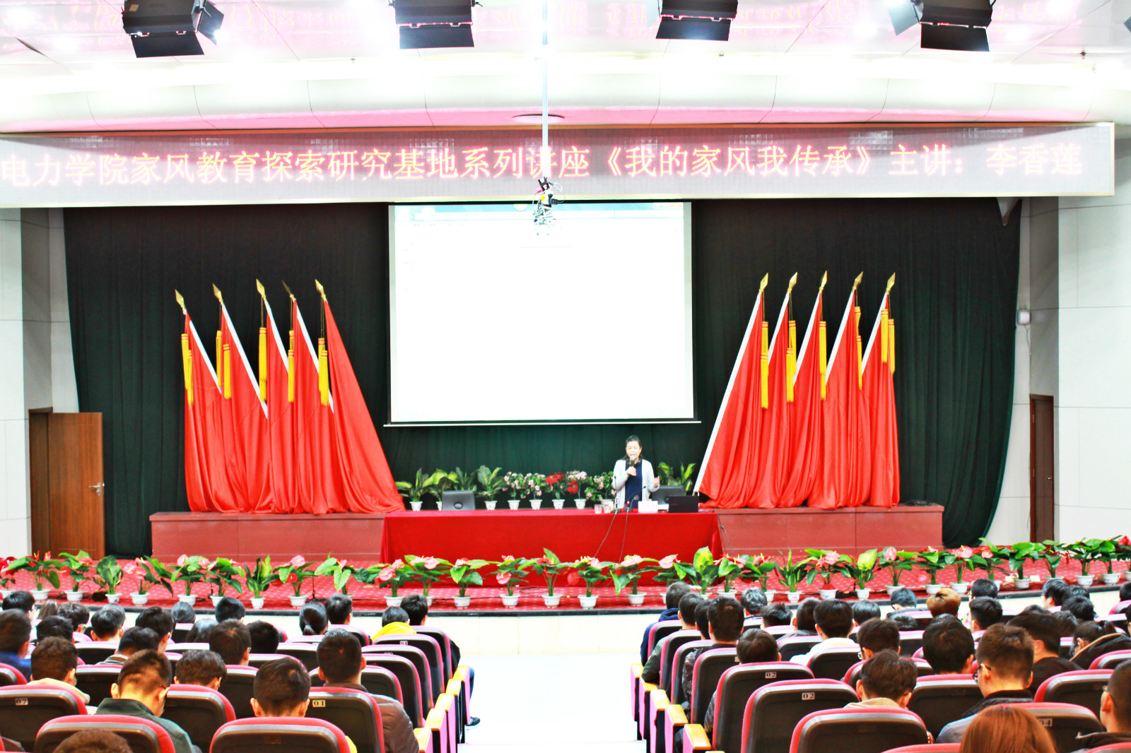 11月21日晚,应Beat365官网家风教育探索研究基地的邀请,曾荣获山西省“维护职工合法权益卫士”称号、山西省“五一劳动”奖章的李香莲老师在Beat365官网博学楼报告厅为电力学院学子作了一场精彩的家风教育讲座。
