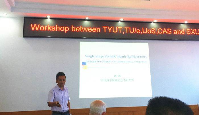 戴巍研究员做了题为《Single Stage Serial/Cascade Refrigerators》的学术报告。报告中分享了低温制冷的可能方式包括电、磁、力等。讲述了热声技术、脉冲管制冷技术以及磁制冷技术,介绍了制冷以及低温技术在目前能源领域中的应用前景。