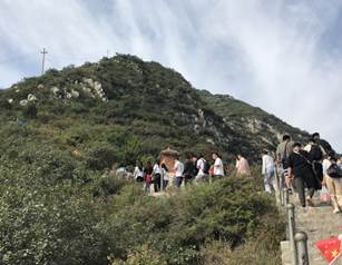 登山开始,队员们个个精神抖擞、奋勇争先的沿着石阶向上。四个小组跟着自己队长和队伍,谁都不愿意落后或者拖慢队伍的速度。大家心里都憋着一股劲,满脸汗水还是不愿意停下休息,依然扶着围栏坚持向上走。在爬山过程中实验室的师生都展现出了良好的精神风貌和坚强的意志力。整个爬山过程中不乏大家相互帮助的温情瞬间,热心的学长们在队伍最后照顾着体质较弱的学妹、为中暑同学拿药、帮同学提着背包。快要走不动的时候大家相互鼓励,彼此搀扶,最终在大家不懈的努力下,整个团队都顺利抵达山顶。
