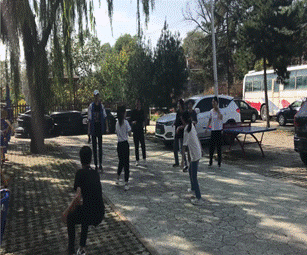 中午12点左右,我们来到山顶的一家农家小院调整休息。午饭过后,大家便做起了游戏。代坤同学演唱的歌曲光辉岁月瞬间就将快乐的气氛推向了高潮,赢得了满堂喝彩。另一边的“沙包战争”也在紧张激烈的进行着。队员们吃力的躲闪着沙包,不断发出欢声笑语。跳着皮筋的队员,她们灵活的身影不断在皮筋之间穿梭,轻巧的做出各种高难度的动作。大家仿佛又回到了童年,活动的场面既激烈又温馨,老师们也动情的说起他们上学时候踢毽子、丢沙包、跳皮筋的故事,拉近了师生之间的距离,使得更加了解彼此。