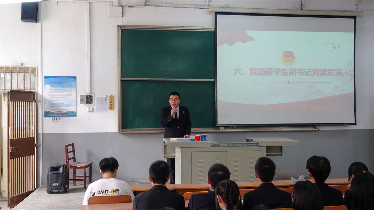辅导员杨慧瑶老师鼓励各位学生干部积极追求进步,为组织增光,为学校添彩。院学生会主席陈润博、院团委学生副书记刘源同学代表学生组织进行了发言。