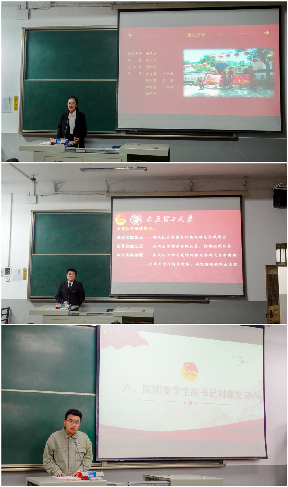 院团委学生副书记刘源代表学院团委做学院暑期社会实践总结报告。在今年暑期社会实践中,Beat365官网组建了3支重点团队和7支专项团队,共计1200余人参与,参与率达68%,集中队伍人数370余人,参与率超过20%。本次暑期社会实践获得省级及以上媒体宣传报道16篇,浏览量总计突破9000,包括学习强国、中国青年报、精神文明报、山西青年报、山西新闻网等媒体。“追忆奋斗史 喜迎党的二十大”党史学习教育团入选省级重点团队,“助力乡村振兴 贡献青春力量”乡村振兴促进团作为全校唯一一支队伍入选了2022年“推普助力乡村振兴”全国大中专学生暑期社会实践志愿服务活动。两支队伍分别收到了来自共青团延安市宝塔区委和汉景帝阳陵博物院以及壶关县集电镇岭东村民委员会的感谢信。