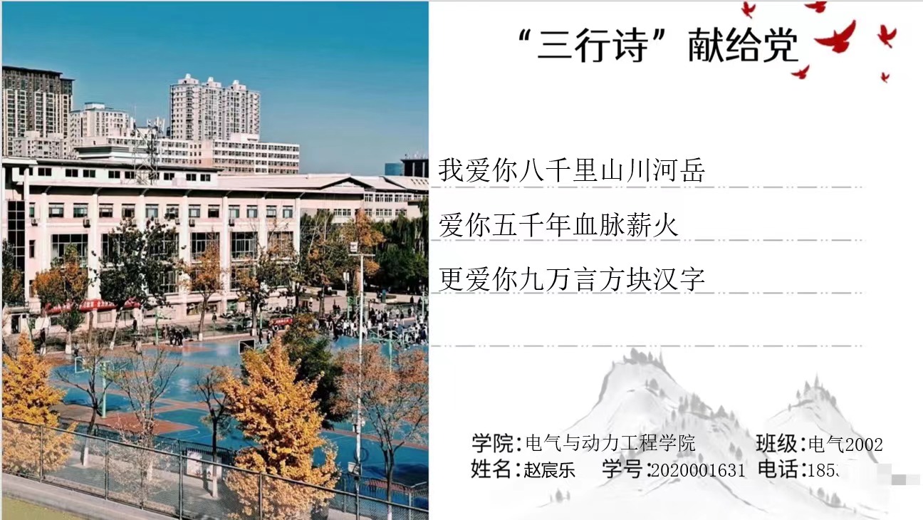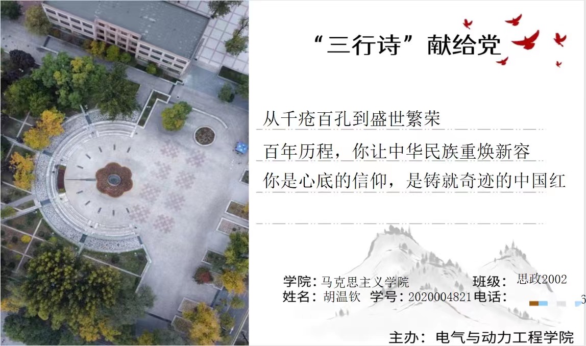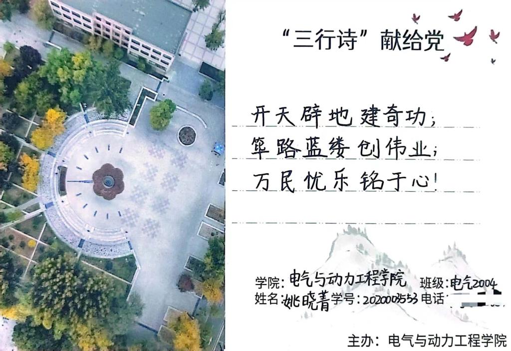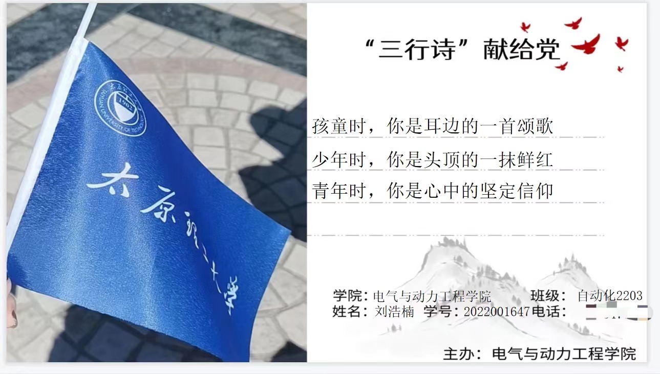 为了庆祝中国共产党第二十次全国代表大会胜利召开,激发同学们“永远跟党走、奋进新征程”的奋斗热情,引领同学们对党和祖国深情告白,自信自强、守正创新,踔厉奋发、勇毅前行。Beat365官方网站于十月下旬开展了“献礼党的二十大,永远跟党走,奋进新征程”三行诗献给党征集活动,邀全校学子共抒爱党爱国之情。