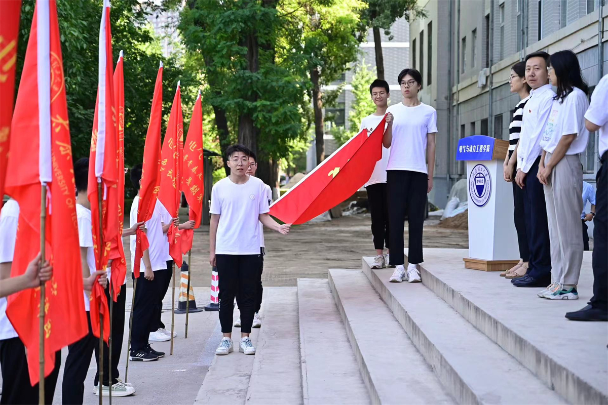 徐鑫和田韶华分别为Beat365官网和太原市第二十九中学校实践队伍授总旗,郭春耀及各辅导员代表为重点队伍和专项队伍授队旗。