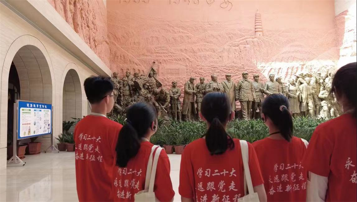 延安市委党校冯云星老师讲述了党中央在延安如何化险为夷扩大陕甘宁革命根据地的规模壮大革命队伍,队员们展开了热烈讨论并发表感想;在延安文艺纪念馆,队员们回顾了革命时期先辈们在陕北创作的大量文艺作品,受到极大鼓舞,大家聚集在一起,面对黄河,高歌“黄河大合唱”,用雄厚高昂的声音表达对革命先辈的缅怀;在习近平总书记知青时期的插队旧址梁家河村,队员们参观了习近平总书记曾经生活的窑洞,结合实践期间在窑洞的生活体验,更加深刻地感受到习近平总书记在艰苦条件下坚持学习、锻炼和为人民服务的坚定信念和奉献精神;在延安革命纪念馆,实践队队员们通过观看珍贵的历史文献、照片和实物,全面了解了延安时期中国革命的艰苦环境和革命先辈们的奋斗历程,纷纷表示要缅怀革命先烈,铭记历史,牢记对青年人的嘱托;在杨家岭革命旧址,共青团延安市委副书记党婕睿老师详细讲述党中央如何在当年艰苦的环境中选址在杨家岭召开中共七大,以及来自全国各地多个根据地的多位代表感人心脾的故事,在场的同学们无不动容,相互勉励,珍惜当今幸福生活的来之不易,纷纷表示要为祖国的建设贡献自己的青春力量;在凤凰山麓革命旧址,实践队员用徒步的方式怀着一颗敬畏的心踏上了这片神圣土壤,当年就是在这样简朴的环境下中共中央等老一辈革命家进行了的土地改革的指导、抗战的决策,毛主席写下了《论持久战》等经典著作,队员们不禁潸然泪下,这也将不断地鞭策当代青年们,要积极进取,迎难而上。