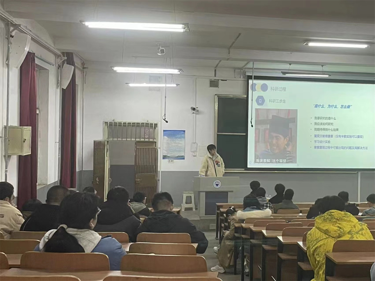 任珂在研究生期间发表了6篇论文,申报了2项国家发明专利。任珂着重向大家分享了自己学习英文的方法:在日常英文的学习中,可以通过观看一些美剧电影来提升个人的英文水平;在论文写作中要摒弃翻译软件,通过英文写作来形成自己的写作思维。最后,任珂建议大家在科研学习中要明确研究目标,学会主动与导师、师兄师姐交流,在日常生活中要养成良好的学习与生活习惯,合理安排时间,提高学习效率,注重劳逸结合。