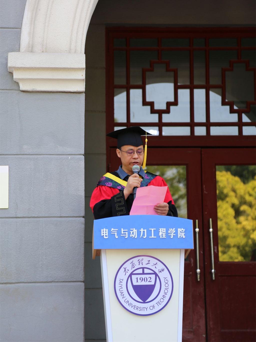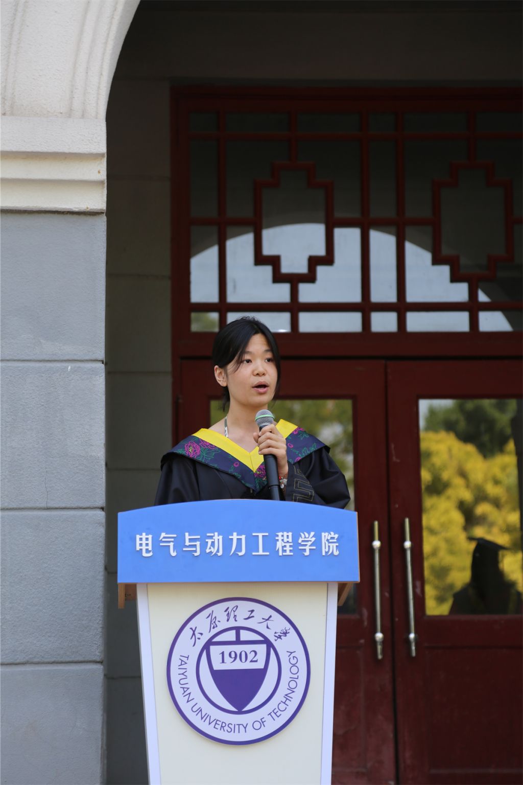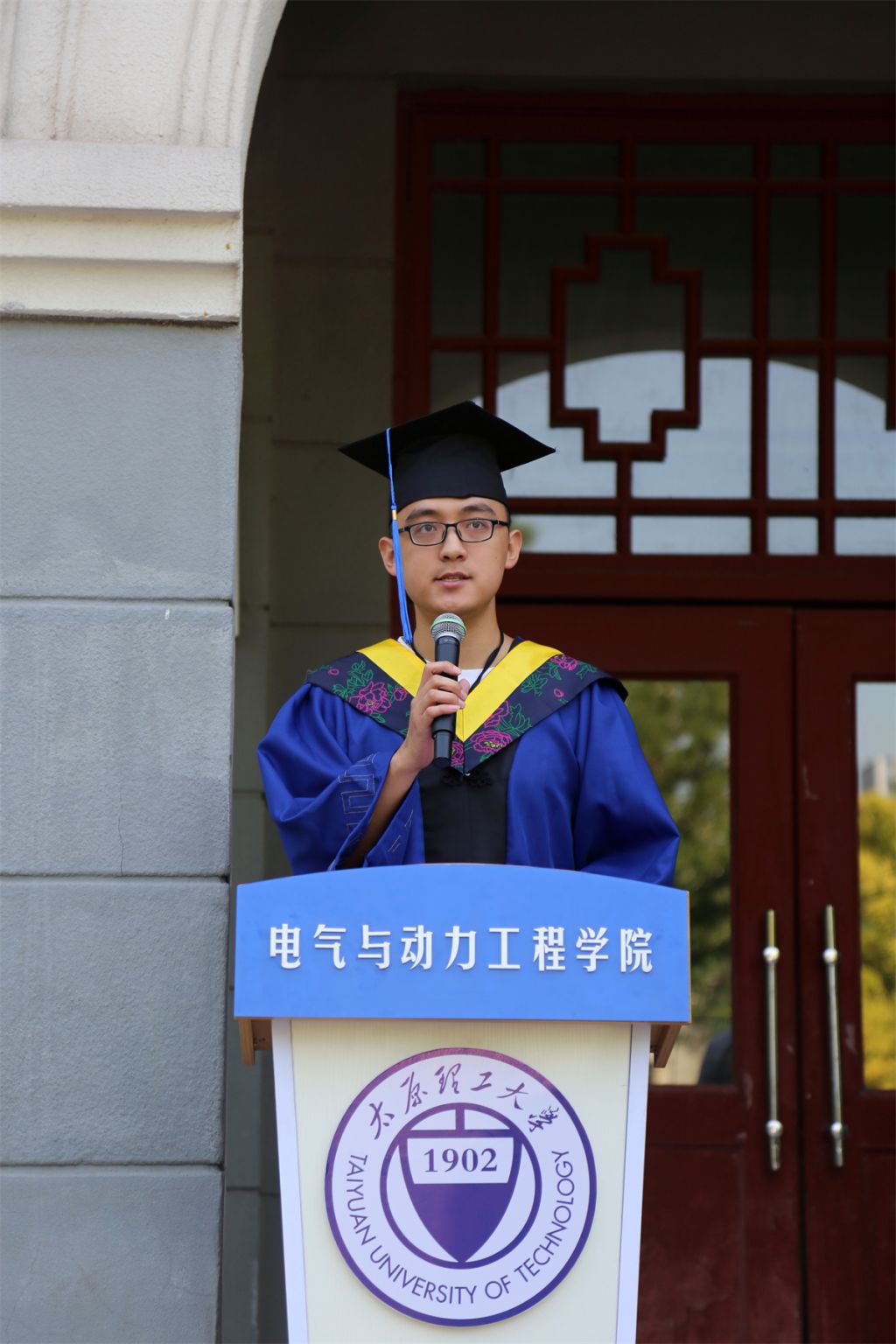 自动化2001班郭靖宇同学作为本科生代表发言,感恩母校的辛勤培育,同学们的深情陪伴,她代表全体毕业生宣誓,会踔厉奋发,赓续前行,努力成为可堪大用、能担重任的栋梁之材。研究生毕业生代表,电气工程21级硕士武宇翔在发言中回顾了在校从事科研工作的点滴,从痛苦挣扎到成长飞跃,同学们破茧成蝶,凤凰涅槃。他号召全体毕业生在新的工作岗位上要做到主动承担社会责任,自觉担负起实现中华民族伟大复兴中国梦的历史使命。
