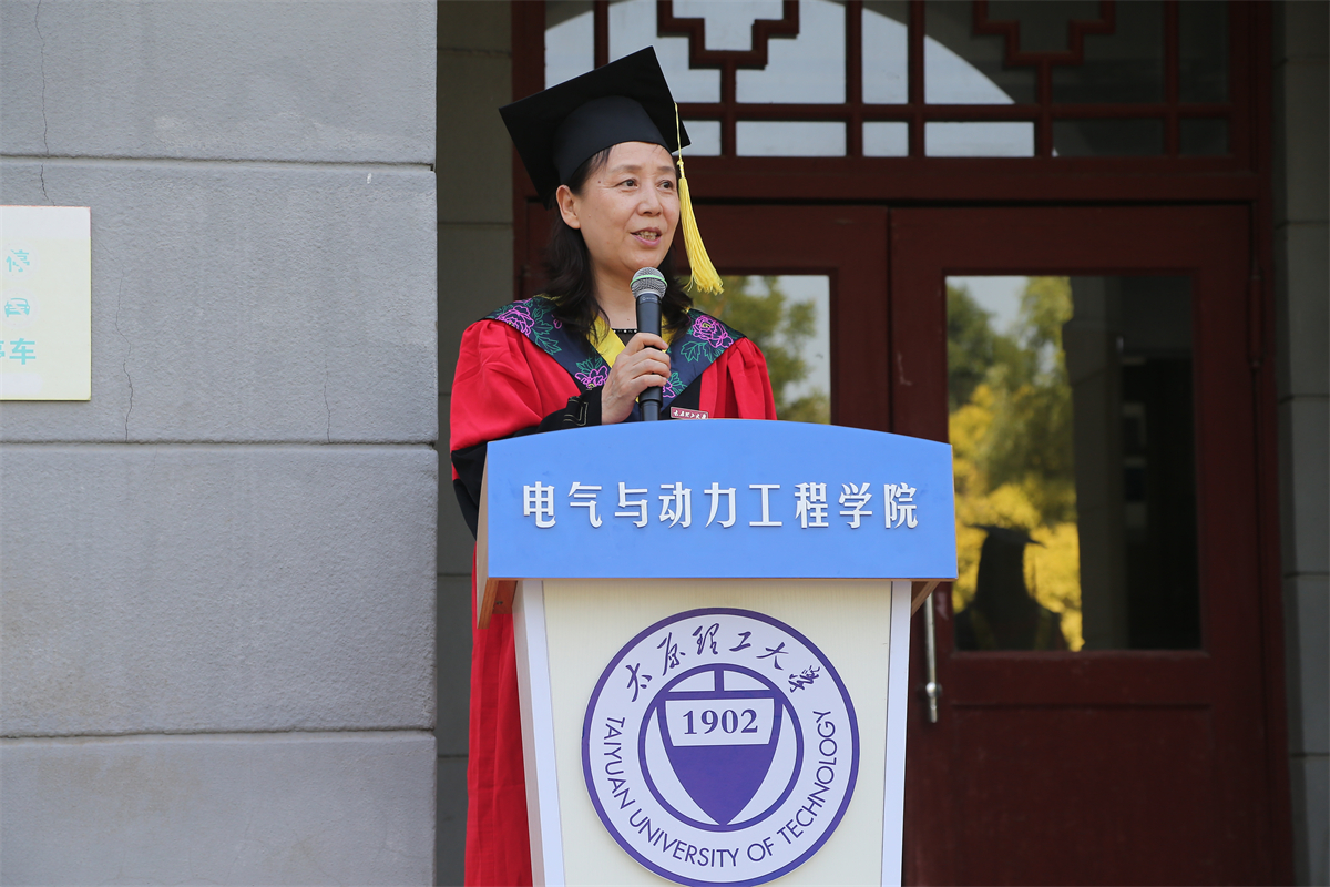 贾燕冰作为教师代表发言,对同学们顺利毕业表达了最诚挚、最衷心的祝贺。她勉励同学们要有家国情怀,要有坚定初心的定力,要有终身学习的意识。