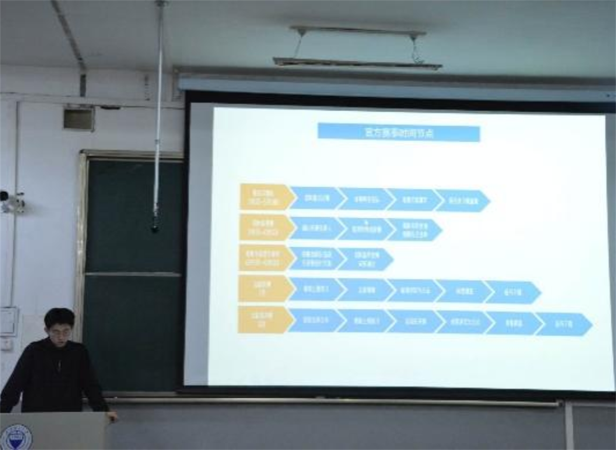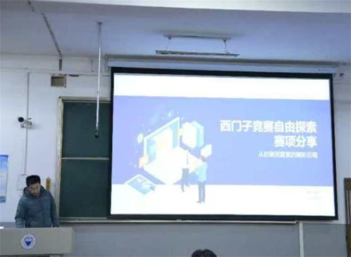 宣讲会伊始,侯婷通过生动的图例和数据为同学们介绍了学科竞赛对人才培养的战略意义,让学生们直观感受到竞赛的价值;同时提出了本届竞赛的目标与期望,动员并激发了同学们的参赛热情。随后,武培雄通过详细的实例和形象的描述,从全国大学生电子设计竞赛和西门子杯中国智能制造挑战赛两个赛事出发,详细为同学们分析赛题方向、组队策略等内容,消除了同学们的后顾之忧。