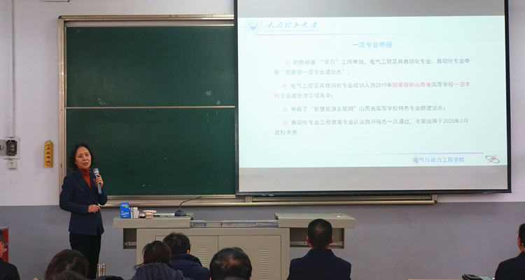 院长韩肖清作2019年度工作报告。她指出,2019年在校党政的正确领导下,在全院教师的共同努力下,学院在教学、科研、人才引进、师资队伍建设、实验室建设、党建工作、学生工作、群团工作等各项事业取得了新的突破。获批国家基金6项,其中重点1项、面上1项,青年3项;科研进账经费达2400余万元;获教育部科技发明二等奖1项、获省教学成果一等奖1项、获山西省科技进步一等奖1项;电气工程及其自动化专业获批国家“一流专业”1个;引进双聘院士2名,兼职教授、特聘教授、客座教授各1名;引进优秀青年博士6名;学生参加科技竞赛获国家级奖项34人次,省级奖项115人次,培育了“家风教育”“诚信商铺”等思政载体。她强调,2019年是奋进的一年,也是收获的一年。在新的一年里,她希望全院上下再接再厉,只争朝夕、不负韶华,争取为学院高质量发展做出更大贡献。