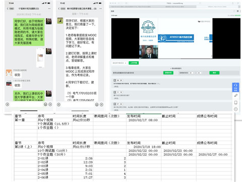 选定中国大学MOOC慕课平台,联系班长建群,提前在群内布置教材、提供讲义,终于在周一顺利开课。老师们也加入相应的课堂积极学习,为保证教学效果,马春燕老师给每个视频的关键时间节点,都增加了互动题,学生只有答题后才能观看下一阶段内容,想尽一切合理的办法督促并帮助学生认真学习。前期做好了准备,课后及时观察学生反馈。本周一下课后,团队成员及时开会,讨论慕课使用情况,并选取了学生代表进行视频会议,经过讨论后,保留了已有好的方法,并进行了改进,诸如:及时补充使用钉钉直播功能,讲解重点和难点,答疑解惑,使用钉钉远程会议功能,在线提问,真正让课堂“活”了起来。同时在MOOC上提前发布公告、教学视频,在每堂课后,添加测试题、作业题,通过微信群提供教学PPT和电子书资料等手段齐头并进。周三下课后,学生们反应良好,主动发来消息表达感谢,听到同学们质朴的语言,真切的表达,团队老师悬着的心放下了。孩子们可以踏踏实实学习了,所有的努力,值了。