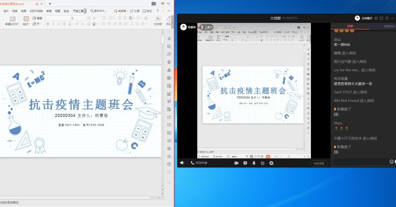 为进一步凝聚支持防疫斗争的强大力量,引导广大学生增强“四个意识”、坚定“四个自信”、做到“两个维护”,坚定在以习近平同志为核心的党中央坚强领导下打赢疫情防控人民战争、总体战、阻击战的信心和决心,深刻认识中国抗疫彰显的中国共产党领导和中国特色社会主义制度的显著优势,根据学生工作部《关于疫情防控期间开展网络主题班会的通知》要求,学院各班陆续开展了“众志成城 抗击疫情”网络主题班会。