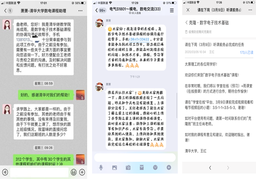 线上教学之初,曲兵妮老师的《数字电子技术》课程根据教学大纲选定的是“学堂在线”平台,为应对集中开课各大平台网络拥堵造成学生学习过程不畅的问题,曲老师建立班级QQ群,利用课前推送预习计划、下课前知识点抢答、课后群内答疑等方式活跃学习气氛外,也积极关注了B站的清华大学标杆视频。