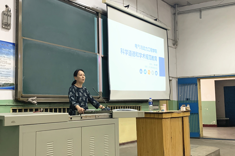 副院长王淑红进行了学科前沿及专业教育,她辩证地指出电力系统的变与不变,介绍了电力系统发展重构和七大新型基础建设领域,详细阐述了电机发展的现状、趋势及研究方法。