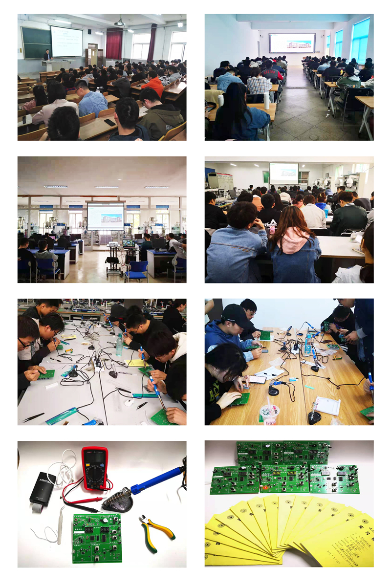 本次毕业实习在迎西校区电机馆过程控制实验室、交通设备与控制工程实验室和电机馆230室进行,从2021年4月10日开始至4月23日结束,为期两周。实习内容包括:实习企业介绍及安全教育、元器件基本知识、焊接技巧与练习、多功能实验电路板焊接及调试等内容。实习考核由企业工程师和校内指导教师共同完成。实习期间,企业工程师通过网络直播平台进行直播教学与指导,并通过微信群对学生进行远程答疑和交流互动。