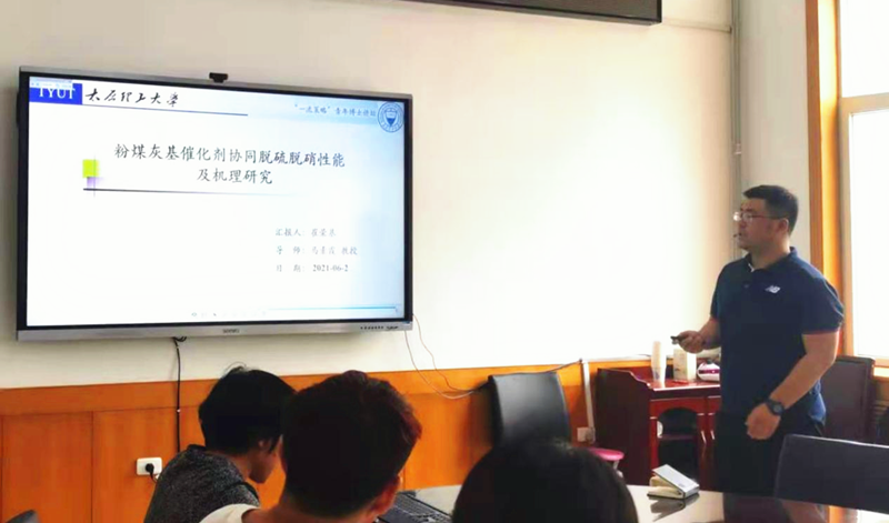 2021年6月2日,Beat365官网成功举办第三期“一流策略”博士生讲坛。本次报告会邀请国网山西省电力公司电力科学研究院刘众元教授高工、Beat365官方网站马素霞教授、金燕教授作为专家评委,博士生崔荣基、郭百合分别作了题为《粉煤灰基催化剂协同脱硫脱硝性能及机理研究 》、《复合型钾基CO2吸附剂的制备及其吸附机理研究》的学术报告,50余名硕士生、博士生参加报告会。