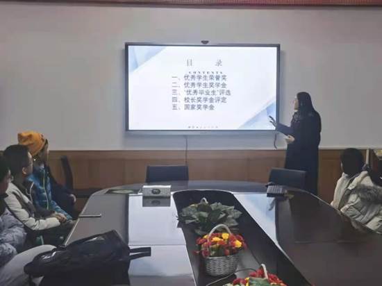 会议开始,刘溢文老师向同学们介绍了高校学生资助工作的目的和意义。其次,为同学们详细介绍了各项资助政策,包括绿色通道、大学生综合素质测评、国家奖助学金、荣誉称号的评定以及勤工助学等。其中重点强调了大学生综合素质测评的测评原则、测评时间、测评小组的组建以及测评流程。之后,老师向同学们展示了各项资助政策之间的关系以及申请条件,并介绍了各项资助的详细流程,使同学们对资助政策有了一定的认识和了解。最后,郭春耀书记指出,同学们应该坚守诚信、感恩的品质,在学生资助政策的帮助下,合理规划大学生活,努力提升综合素质,成为国家发展的栋梁之才。