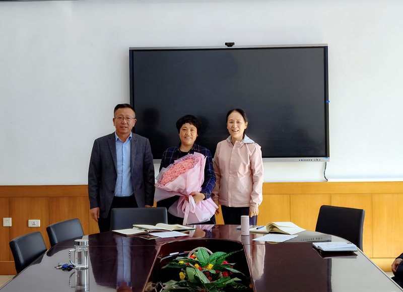 最后徐鑫书记、韩肖清院长代表学院工会向王淑红献上了鲜花,感谢王淑红老师14年来的无怨无悔的奉献。