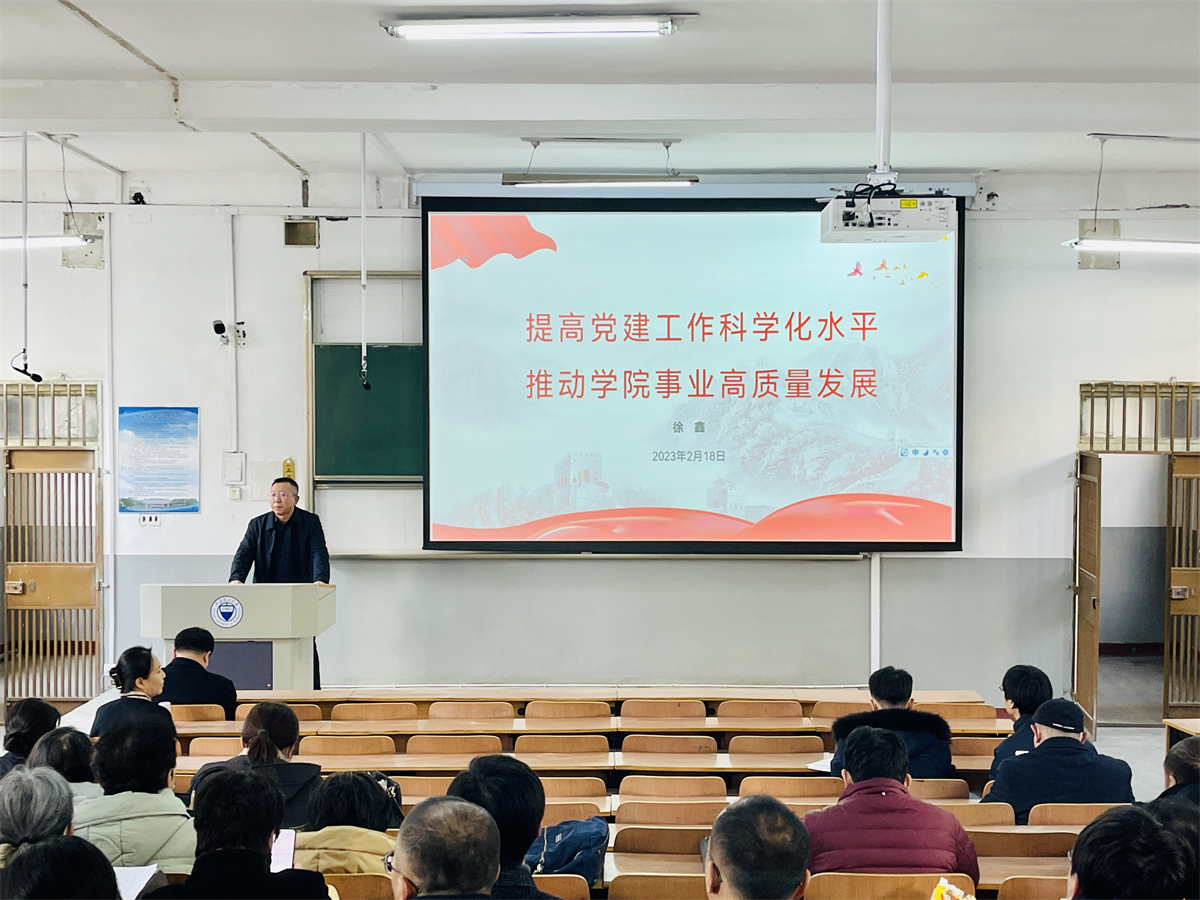 会上,学院党委书记徐鑫作了主题为“提高党建工作科学化水平,推动学院事业高质量发展”的报告。首先,传达了Beat365官网春季学期工作会议郑强书记的讲话精神,要求全院上下在校党委的领导下深入学习贯彻党的二十大精神、习近平总书记系列重要讲话重要指示精神和蓝佛安书记的讲话精神,擘画并实现新时期学校发展战略目标;其次,总结了2022年学院党建工作开展情况,学院全体师生以习近平新时代中国特色社会主义思想为指导,以推动学校高质量发展为主题,在党建、疫情防控、团学工作等方面取得了显著成效;三是通报了政治巡察、民主生活会召开等情况;四是从“七个坚持”的维度对下一步工作进行了部署。
