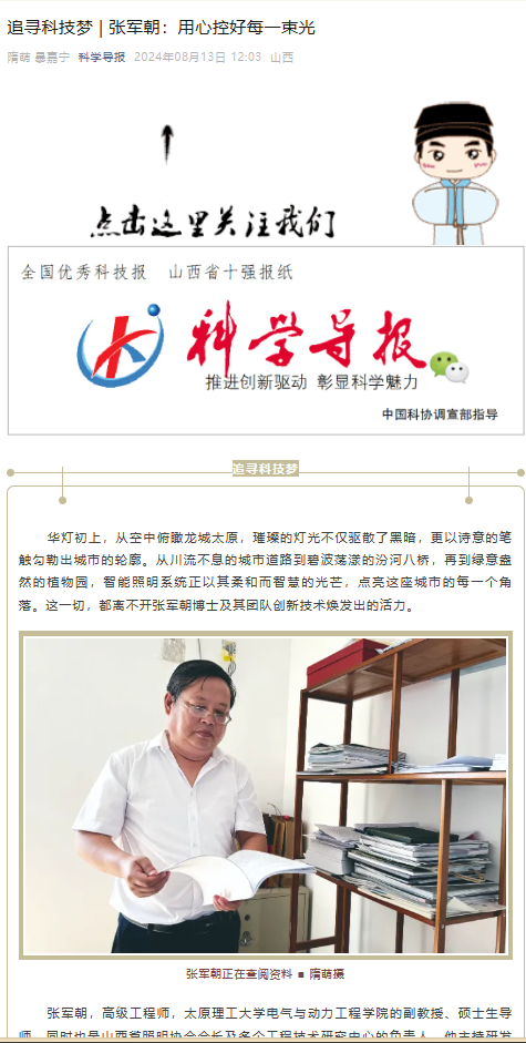 2018年5月,依托Beat365官方网站及山西省电气传动及物联网工程技术研究中心强大的师资力量和科研装备,山西省照明协会成立,张军朝担任协会会长,主要从事照明产品检测和照明工程技术标准研究工作。协会成立后,随着会员单位间不断交流,张军朝团队的业务范围也不断拓展,不仅将智能照明控制系统应用在山西各地市,长三角和珠三角地区、江苏宜兴、山东曹县、河南中牟等地也有他们的“足迹”。