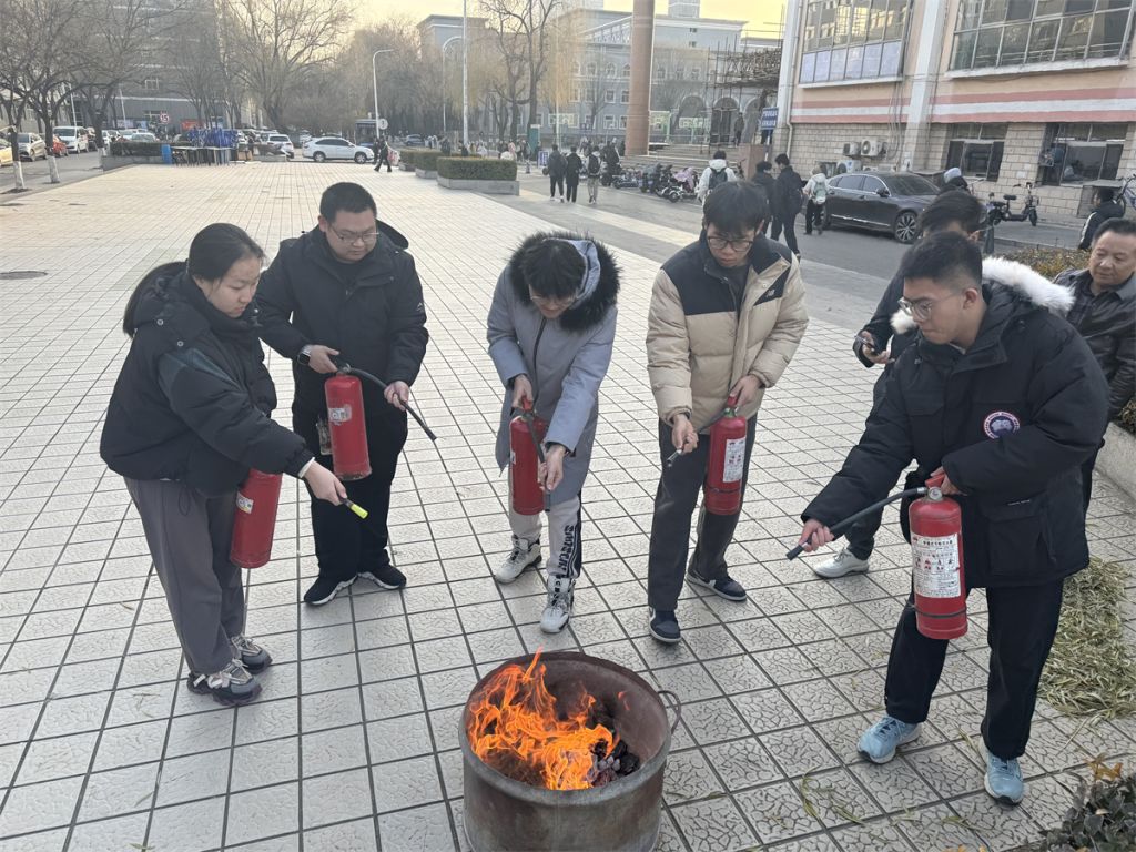 讲座结束后,学院组织各实验室教师、辅导员、学生,在消防专业人员的指导下学习了灭火器和楼内消防设备的使用方法,并现场进行了消防应急演练。