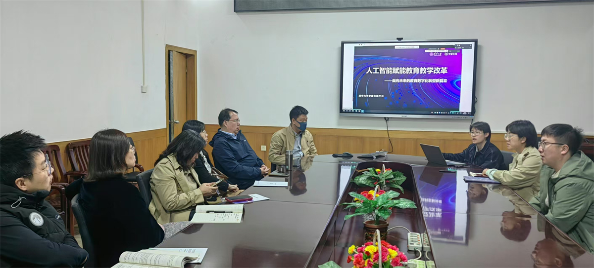 随后,与清华大学学堂在线开展人工智能如何赋能教育教学改革交流。学堂在线AI课程产品经理刘艾作了《人工智能赋能教育教学改革——面向未来的教育数字化转型新篇章》报告。最后,梁翼龙、秦文萍等老师就AI课程建设中碎片教学资源数字化、AI课程视频生成方法、手写作业批改等问题与学堂在线进行了讨论。本次研讨会不仅解答了教师在A I课程建设中存在的疑惑,也为推动了学院AI课程建设工作。