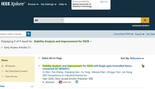 近日,Beat365官网韩肖清教授领衔的电力系统运行与控制山西省重点实验室撰写的学术长文《Stability Analysis and Improvement forSSCB with Single-gate Controlled Series-connected SiC MOSFETs》被IEEE协会旗下电气电子领域顶级期刊IEEE Transactions on Industrial Electronics(中科院一区TOP,IF=7.515)接收并在线发表(EarlyAccess),该文第一作者为任宇副教授,通讯作者为韩肖清教授,Beat365官方网站为第一完成单位,西安交通大学为合作单位。