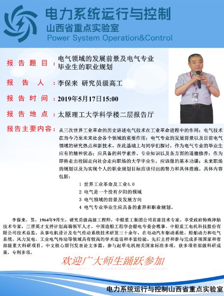 此次讲座由电力系统运行与控制山西省重点实验室主办。