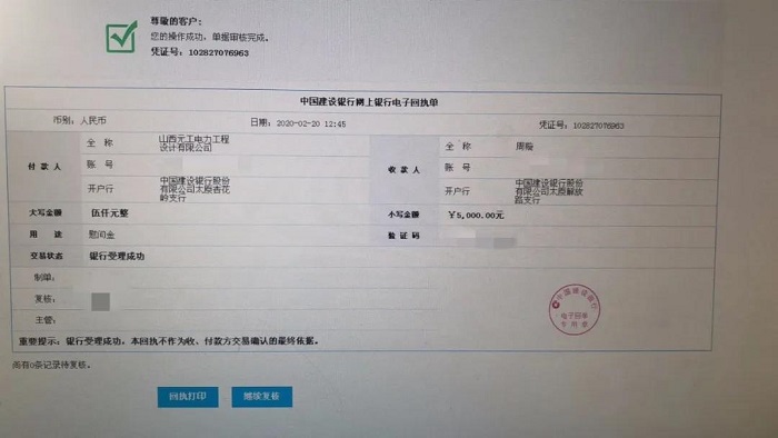 近日,在得知集团电力工程设计有限公司员工周璇的爱人秦卫伟医生作为“山医大二院第八批援鄂医疗队”成员出征武汉,正在前往疫情较为严重的武汉大学中南医院重症区进行支援的消息后,吕晋宇校友及时对周璇的家庭情况予以密切关注,并为其发放了5000元慰问金,以解除其后顾之忧。周璇激动地说:“感谢公司的悉心关怀!这都是我们应该做的。爱人作为医生参加援鄂医疗队更是职责所在!我一定要做好本职工作,回报公司厚爱,等待爱人平安归来!”