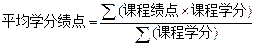 将某一课程的学分乘以该课程考核后所得的绩点,即为该课程的学分绩点。以学生所得全部课程的学分绩点之和,除以该生同期修读的学分总数,即为该生该时期内的平均学分绩点。即: