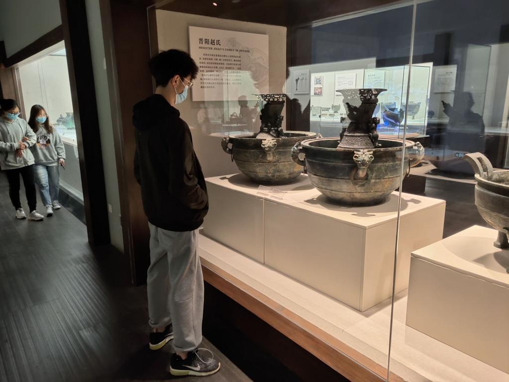 山西博物院的基本陈列以“晋魂”为主题,由文明摇篮、夏商踪迹、晋国霸业、民族熔炉、佛风遗韵、戏曲故乡、明清晋商等7个历史文化专题和土木华章、山川精英、翰墨丹青、方圆世界、瓷苑艺葩等5个艺术专题构成。参加此行的同学们,走遍了博物院的各个角落,在每一片历史残垣与长河遗迹之中,感受文化之厚重,大国之底蕴,同时以青年大学生的求知欲作为内驱力,在探索中思考和发掘历史文明与民族精神的内在联系。