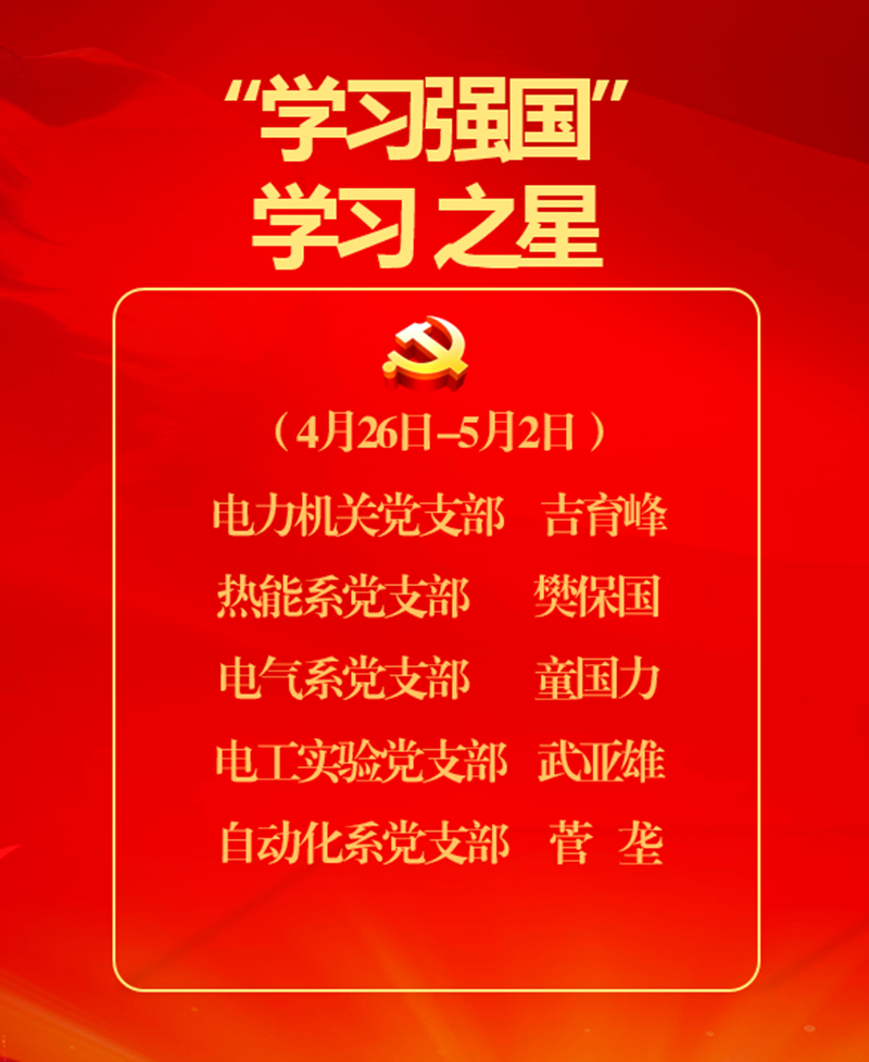 电力学院《学习强国》学习之星教工支部4月26日-5月2日