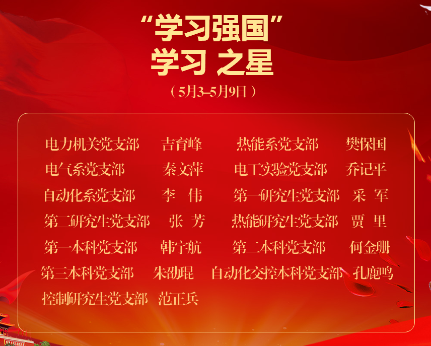 电力学院《学习强国》学习之星(2021年5月3日-5月9日)