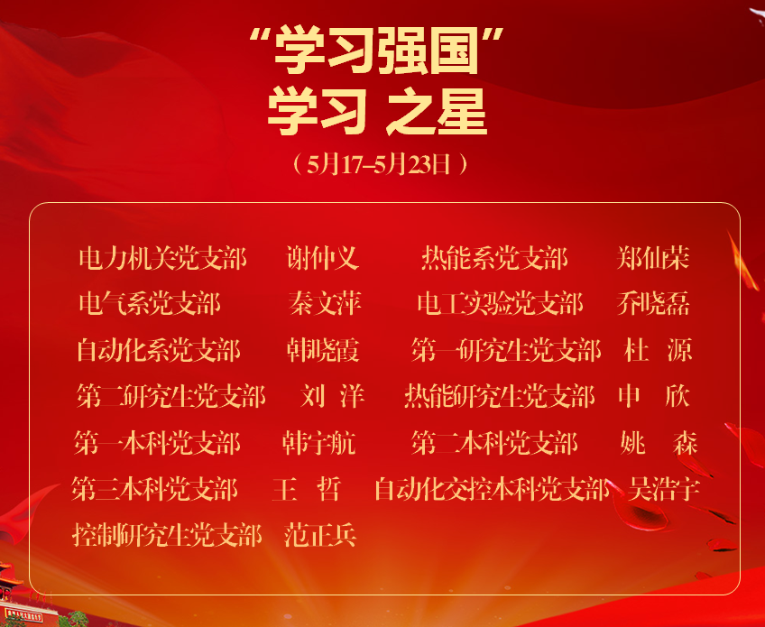 电力学院《学习强国》学习之星(2021年5月17日-5月23日)